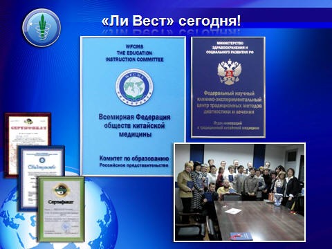 Широкомасштабная работа проводится в рамках заключенных договоров между Сибирским отделением Российской академии медицинских наук (СО РАМН), Министерством здравоохранения и Академией наук Китая при непосредственном участии компании; договор между Тяньцзиньским университетом ТКМ, Новосибирским НИИ клинической иммунологии СО РАМН и компанией «Ли Вест» (в Китае он имеет статус межгосударственного договора). На основании этих договоров ведется научно-исследовательская деятельность, осуществляется лечебно-профилактическая работа и обучение врачей фундаментальным основам традиционной китайской медицины. На базе компании в апреле 2008 года состоялось открытие первого зарубежного представительства Комитета по образованию Всемирной федерации китайской медицины (WFCMS). Открытие представительства свидетельствует о новых возможностях для врачей с европейским медицинским образованием в сфере ин-тегративной медицины, занимающей качественно более высокий уровень в оказании эффективной медицинской помощи.